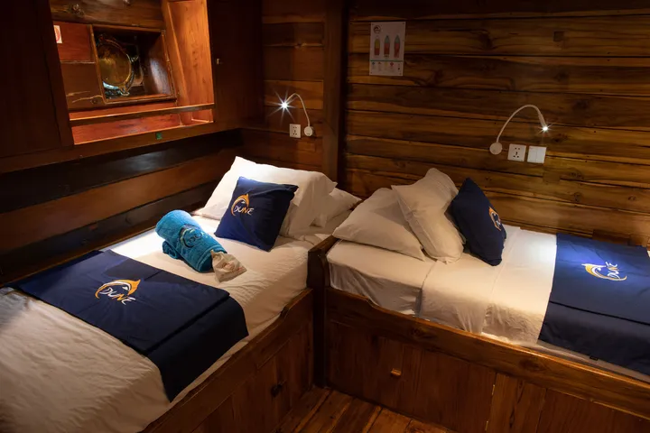 The 42m long Aurora is a Pinisi Vessel, built in Sulawesi, that offers all the advantages of a modern boat combined with the charm of a traditional one. There are 9 double or twin cabins on board, all with en-suite bathrooms, air conditioning, and daily housekeeping services, accommodating up to 18 guests. The onboard expert chefs prepare local and international dishes for every taste. Special menus are available, such as vegetarian, vegan, and gluten-free. The Aurora sails all year to the most breathtaking areas of the Indonesian archipelago, where crystal-clear waters and stunning landscapes are waiting to be discovered.