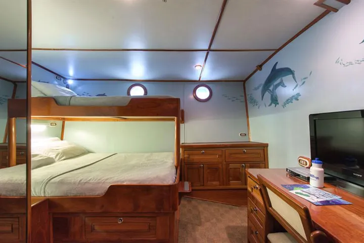 The Argo liveaboard was completely refitted in 2008 to offer guests a luxury dive experience in Cocos Island of Costa Rica. Nine guest cabins cater for 18 guests on board. Cabins feature individually controlled AC, a luxury private en-suite bathroom with granite worktops, flatscreen TV & entertainment system, shelves, drawers and hanging hooks, a desk and chair. Each cabin is carpeted throughout and has its own theme with hand painted artwork by Carlos Hiller. The salon is located on the main deck and a variety of nightly entertainment available, including slide shows, DVDs and games. Gourmet chef-prepared meals of a combination of American and local Costa Rican cuisine are served in the main deck dining room. On the upper deck is a study where you can view and edit your video and digital photography and the sun deck has comfortable loungers, al fresco dining area and BBQ.