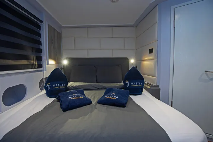 The award-winning MY Blue Horizon liveaboard offers year-round diving in the Red Sea. She accommodates 26 guests in 13 guest cabins. There are 9 classic twin or twin/double cabins on the lower deck and 4 premium double cabins on the mid-deck. All cabins are ensuite and air-conditioned with mini refrigerators, TVs, and entertainment systems. The dining area and salon on the mid-deck is where breakfast, lunch, and dinner will be served buffet style, with snacks, fruit, and juices served throughout the day. The upper deck has a sky lounge and bar with a state-of-the-art entertainment system, and the sun deck has comfortable loungers and a hot tub.