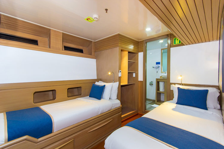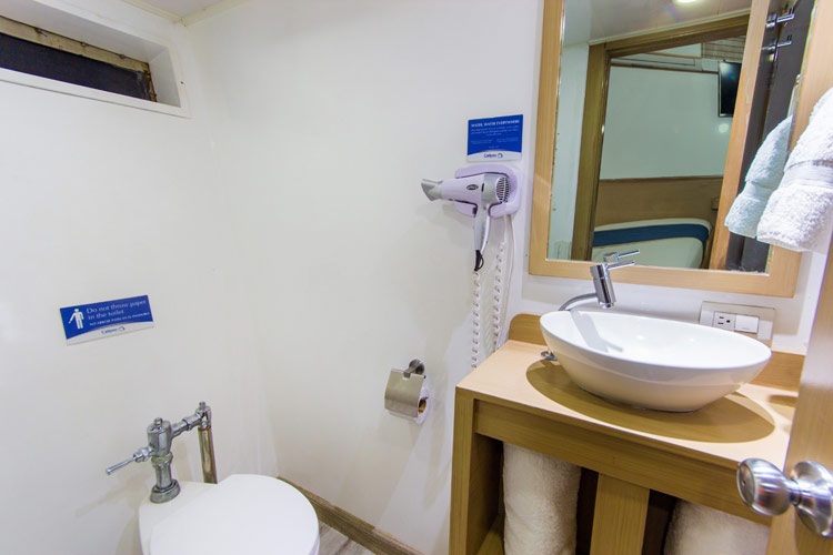 All ensuite double cabins are convertible to 1 bed with individual climate control, TV, safety deposit box, storage, hair dryer and windows. The dive deck has a rinse tank, a large camera table, dry charging area, hot showers, individual dive stations with storage, wetsuit racks and a bathroom.