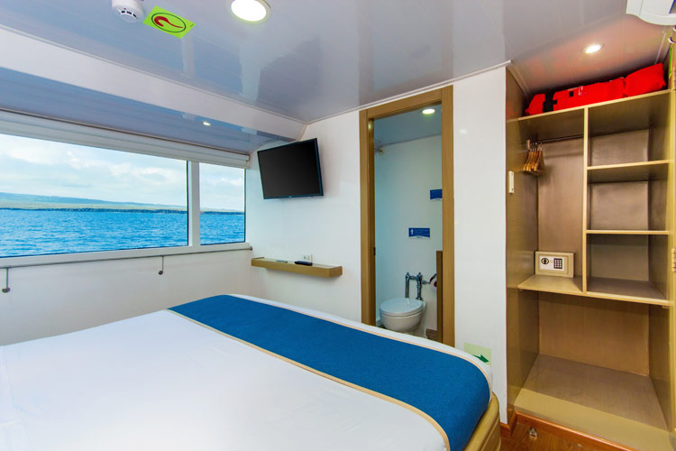 Calipso Galapagos is a 35.4 m/117′ yacht. Completely rebuilt in 2019 so all systems and spaces are new. The dive deck is spacious and efficient. The sun deck has a jacuzzi, al fresco dining and lounger areas. Our spacious salon and dining areas offer amazing panoramic views on both sides. Wi-Fi is offered free of charge.
