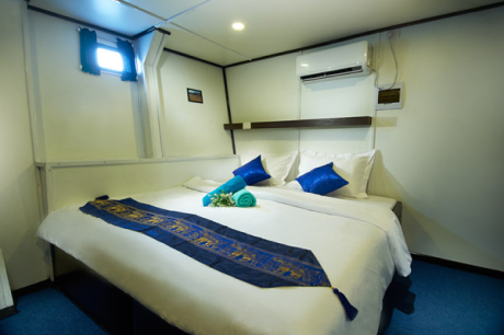 She welcomes a total of 16 divers on each liveaboard trip, maximizing safety and comfort for all guests on board. Featuring eight air-conditioned cabins spread across three decks, each has its own private en-suite bathroom with hot water, and ample storage room for all of your personal belongings. For added convenience and flexibility, Galapagos Master offers some cabins that can be used either as a twin or as a double bedded room.