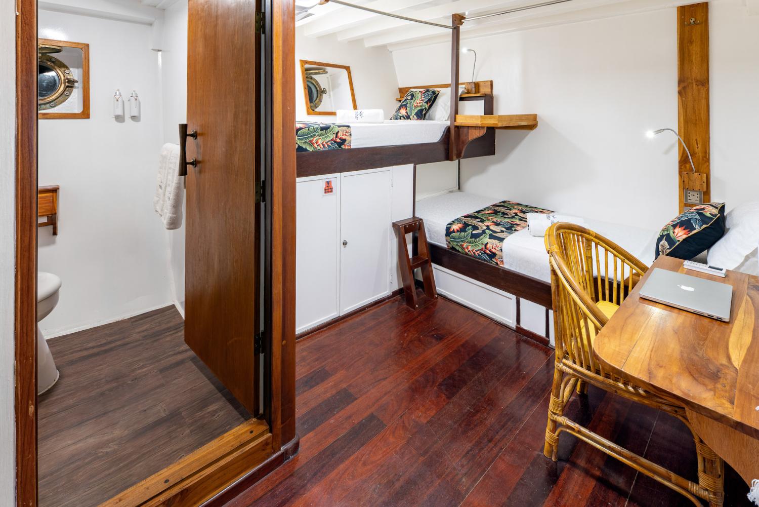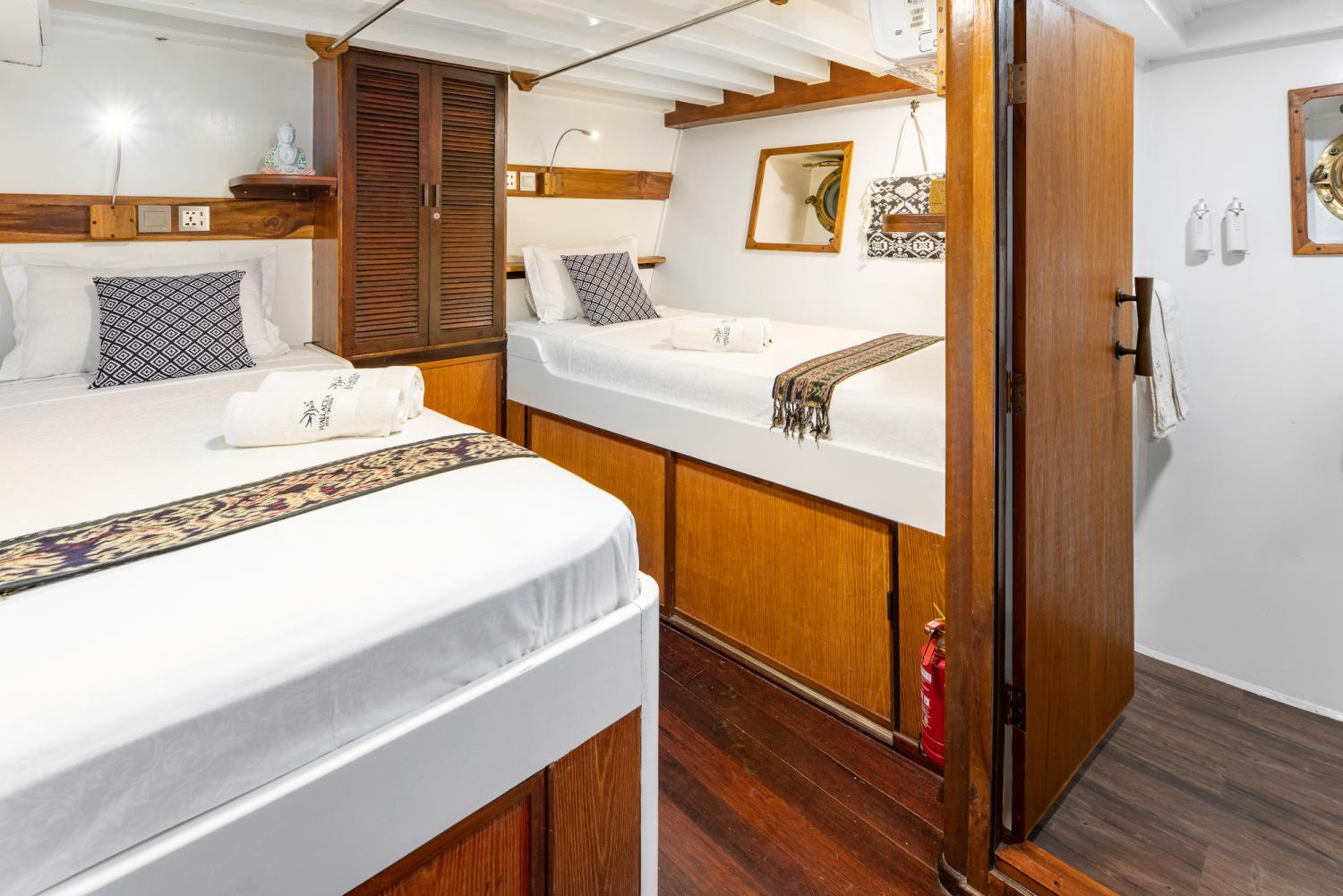 All of the spacious cabins have individually controlled air-conditioning and en-suite bathrooms with hot water. Our two very spacious 22 feet custom-built aluminum tender boats will make your experience of going in /out of the sea very easy and comfortable. Towels and toiletries, soap, shampoo, and toothpaste are provided onboard.