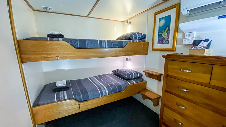 The MV Spoilsport liveaboard is an award winning vessel which was custom built to explore the uncrowded dive sites of the Coral Sea. The twin hull design of the boat increases stability making for smooth sailing year-round. On board there are 4 cabin standards to cater to differing budgets, from the budget cabins with twin bunk beds to the premium cabins with double beds and ocean views.