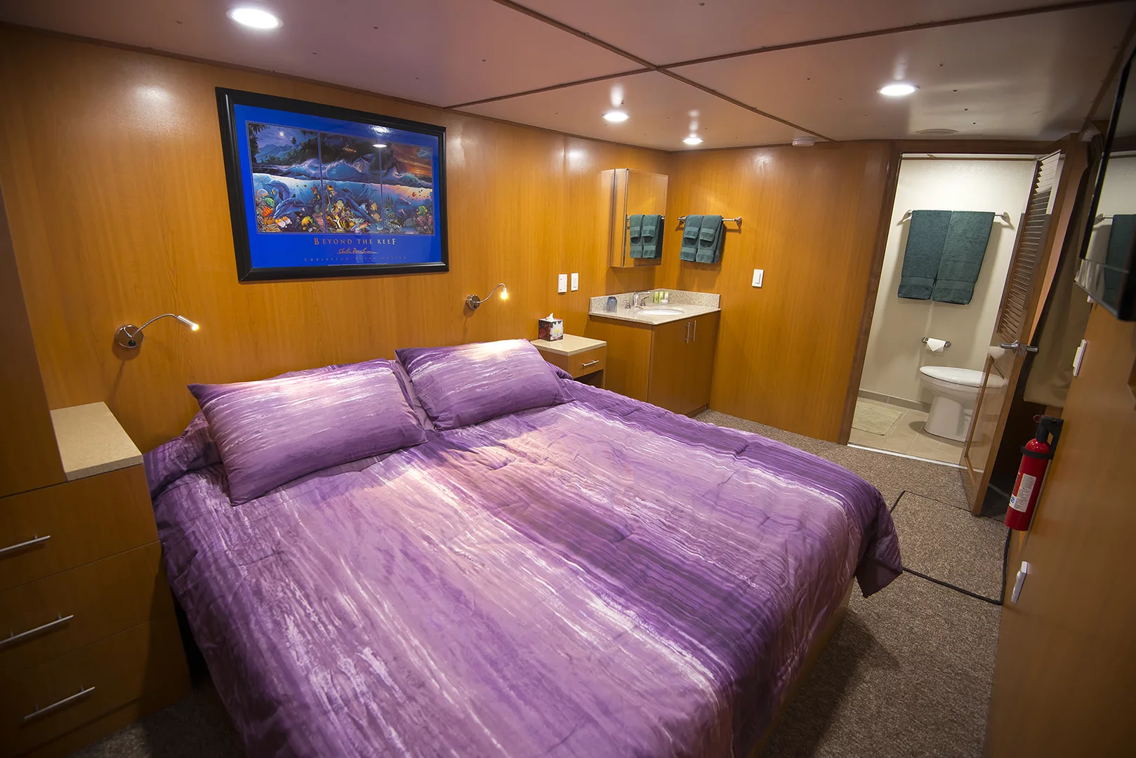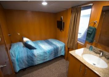 Up to 20 guests on board the M/V Odyssey Liveaboard are catered to with 6 deluxe double cabins and 4 twin-share cabins, each equipped with individually controlled air-conditioning, storage units, and bar fridges. The spacious dining area can accommodate all guests aboard the MV Odyssey Liveaboard, or you can choose alfresco dining on the upper outdoor deck. All meals are prepared fresh daily, and dietary requirements can be catered to with advance notice. There are three other outdoor viewing decks for further relaxation and comfort. The MV Odyssey Liveaboard also has state-of-the-art viewing and surround sound systems, large plasma & LCD screens, and DVD players to entertain guests.