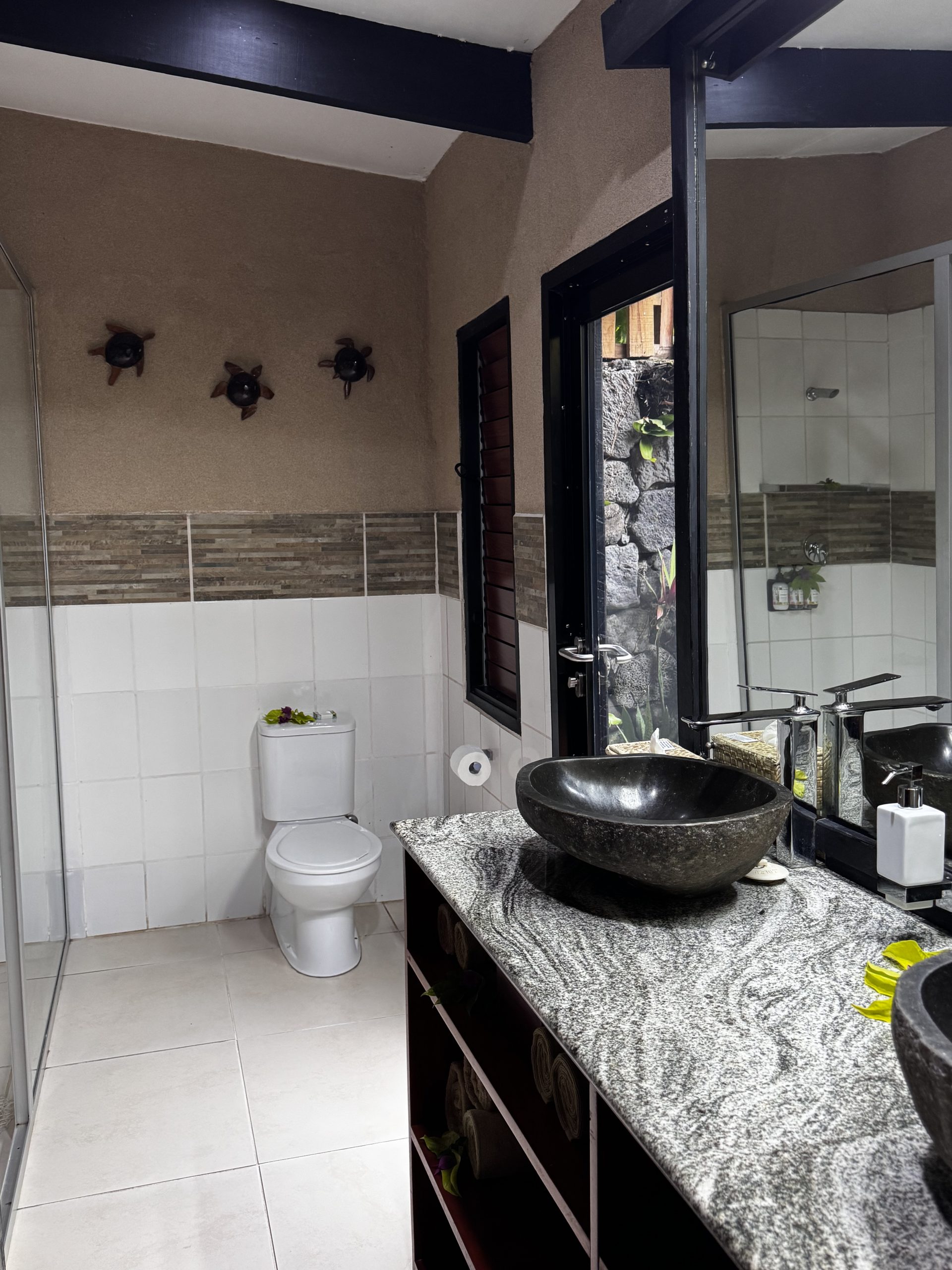 Accommodations with AC and outdoor shower