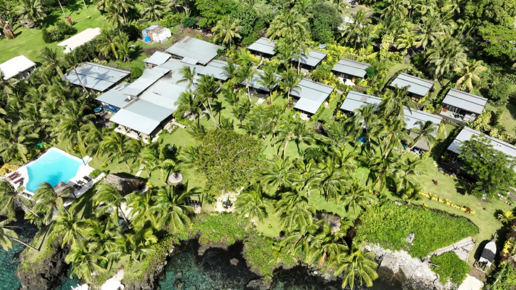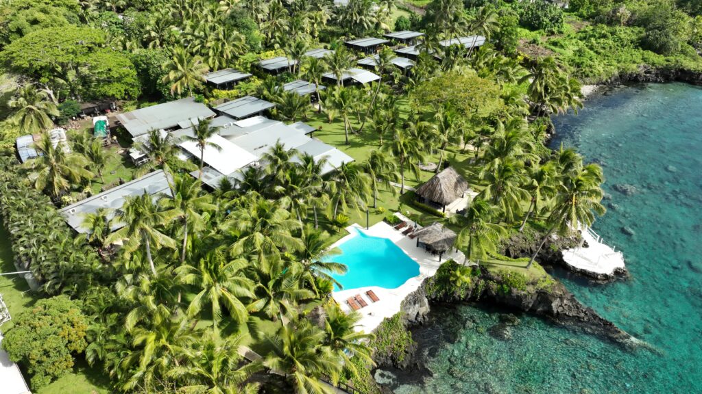 Paradise Taveuni sits on Taveuni's southern coast near Vuna Village, offering direct ocean vistas. Reach the resort via Taveuni Airport (TVU), about 60 minutes away by 4WD vehicle over a partly unsealed road, or opt for a scenic 30-minute speedboat ride from the wharf for $300 USD return per 1-2 guests. International travelers fly into Nadi (NAN), then connect via domestic flights from Fiji Airways or others, lasting around 60 minutes over reefs and islands.