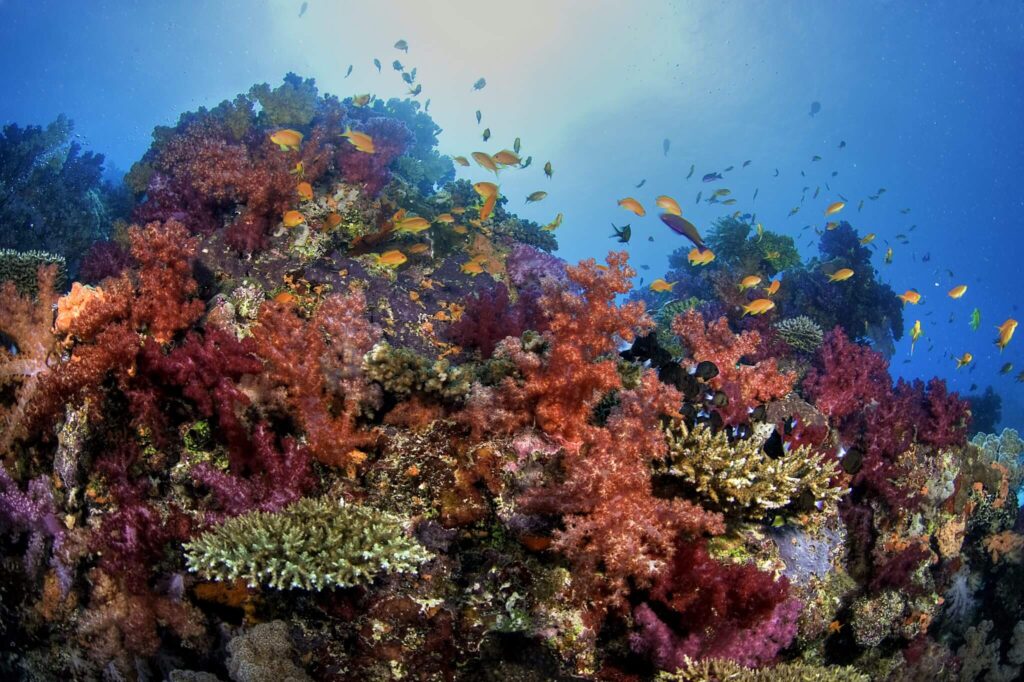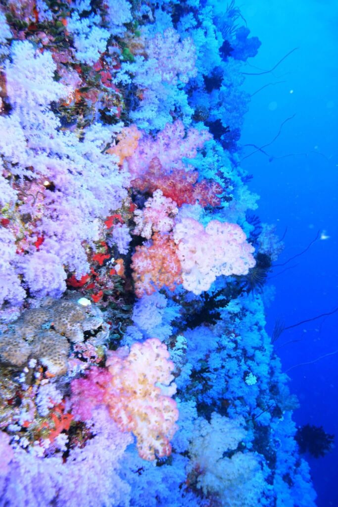Over 40 sites span Vuna Reef and Rainbow Reef, including The Great White Wall (Level 3, white soft coral tunnels and mantas), The Zoo (Level 3, sharks, barracuda schools, eels), and Orgasm (Level 2, sharks, rays, pelagics at 18m). Vuna Reef highlights hard corals and marine life variety.