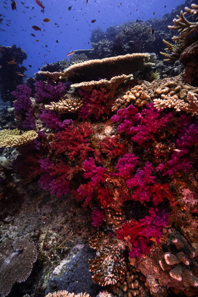 Easy access to drift dives, soft coral gardens, manta encounters (seasonal), and signature sites such as the Great White Wall.