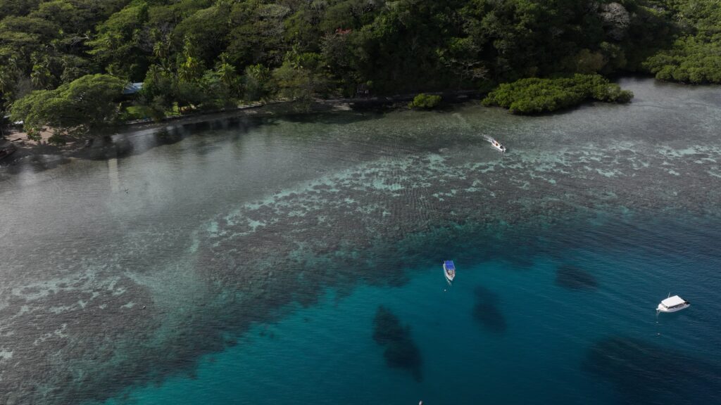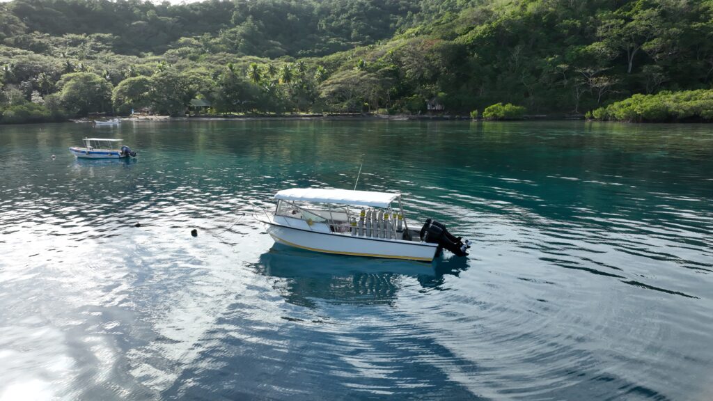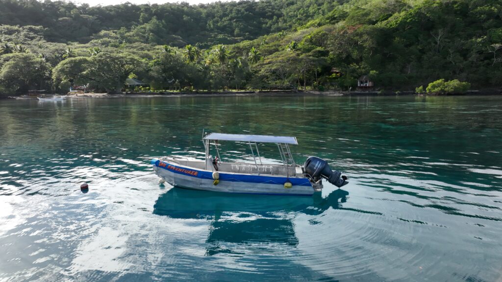 Sau Bay’s dive operation and PADI training center are located on site at the resort, close to the main jetty and boat boarding area. The setup includes compressor and nitrox systems, gear storage, rinse tanks, and briefing spaces, allowing guests to walk from their bure to the dive center in just a few minutes.