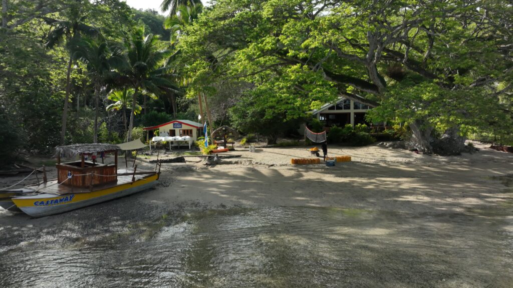 Boutique dive resort in a secluded bay, around 5 minutes by boat from Rainbow Reef and the Somosomo Strait.