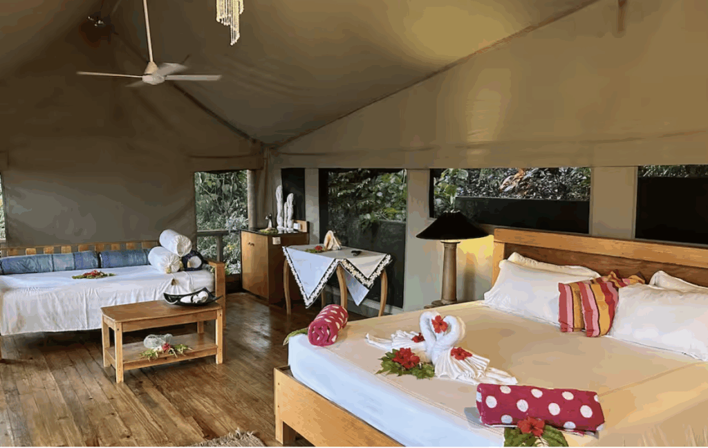 Total rooms: A compact mix of Deluxe Oceanfront, Two Bedroom Oceanfront, a Luxury Tented “Treehouse” and a Luxury Oceanview Bure.