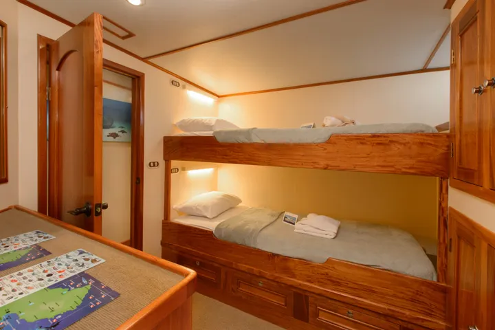 Social areas aboard the MV Sea Hunter include the lounge fitted with chairs, long, padded seating areas for sitting, DVDs, videos, games and more, as well as the mini-bar. The dining room has five, 4-person booths arranged in two rows, and is where the menu of a combination of American and local Costa Rican cuisine is served, including fresh tropical fruits, salads, fish, chicken, beef prepared in a variety of ways. There is also a study, which provides a relaxed atmosphere and extensive library, as well as a video and digital photography editing suite.