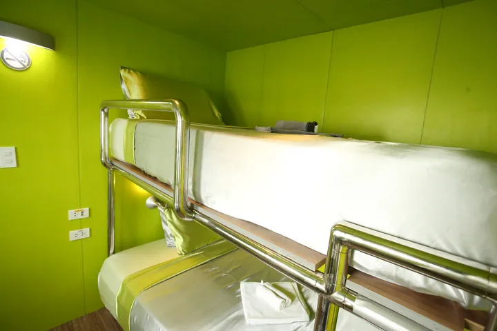 Designed with comfort in mind, the Stella Maris Explorer offers year-round liveaboard diving in the Philippines. Ten spacious 'retro-chic' cabins accommodate up to 21 guests. Each cabin features memory foam mattresses, pillows, AC, storage space, and private en-suite bathrooms. The cabins are spread over 3 decks with a choice of deluxe or premium economy, with twin, double, or queen beds available. Social areas include a spacious salon with a large TV and a dining area where expertly prepared meals and snacks incorporating lots of fresh fruits, vegetables, and a variety of proteins are served. The top deck offers chairs and loungers either in the sun or covered area, the perfect place to soak up the sun, relax in between dives or enjoy a stunning sunset with a cocktail.