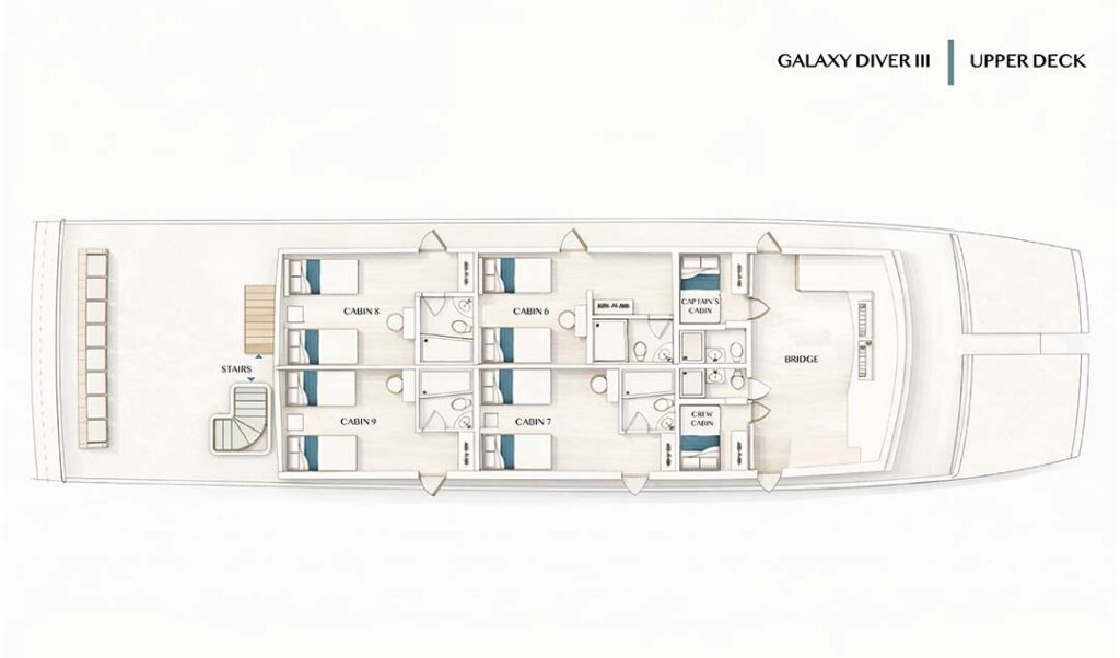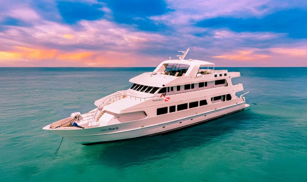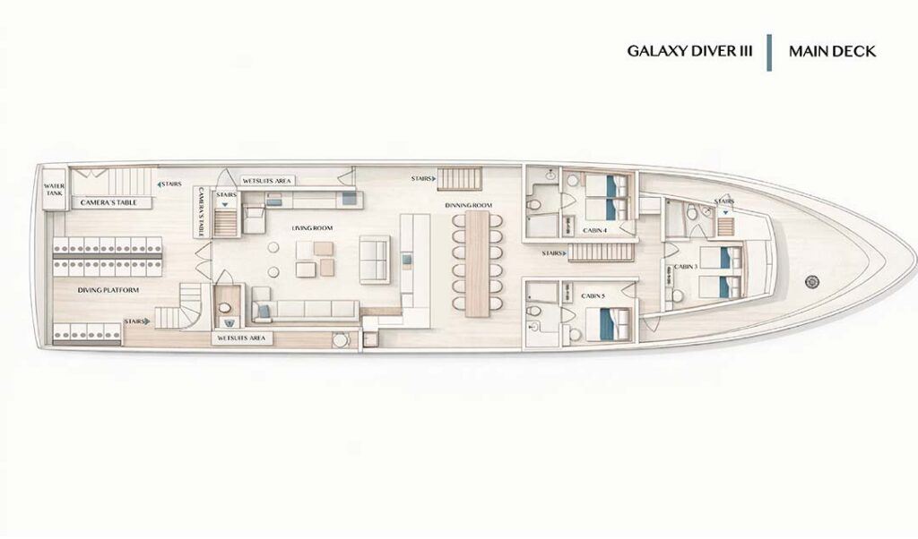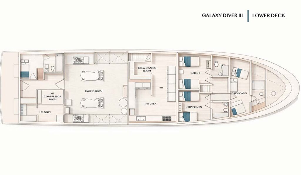 The luxury liveaboard vessel is fully equipped with all the amenities you need for a comfortable and enjoyable stay including cozy cabins with ensuite bathrooms, a jacuzzi, spacious social areas, a dedicated dive deck, a sun deck, and extraordinary food selection taking into consideration your dietary restrictions.
