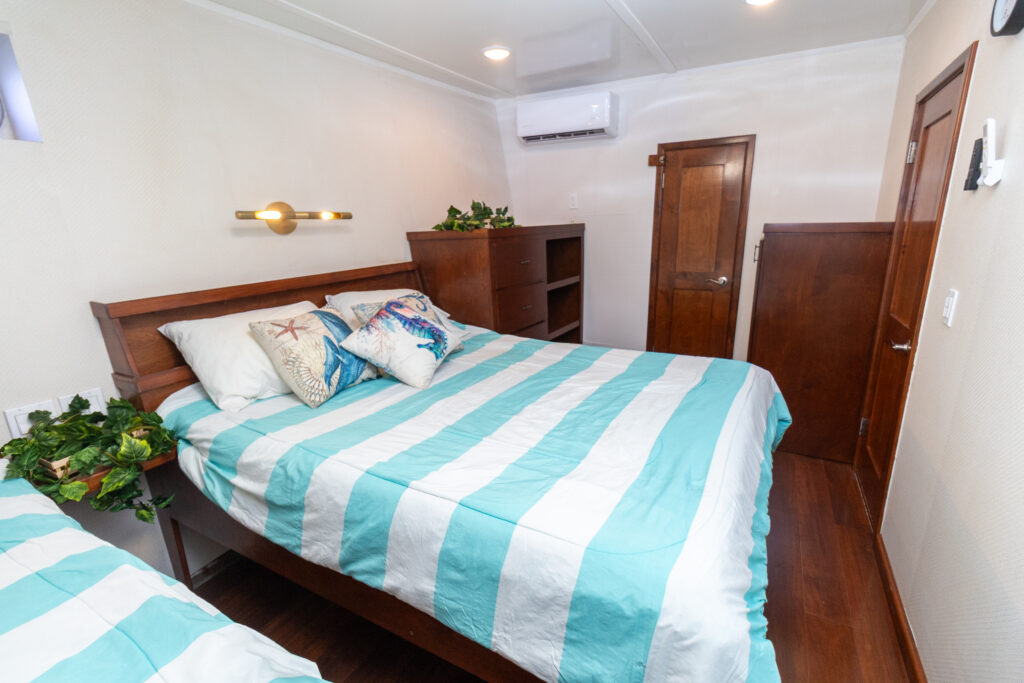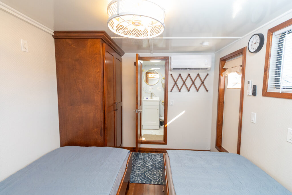 Cabins 1-6 have two XL twin beds. The beds are perpendicular to each other to maximize cabin space