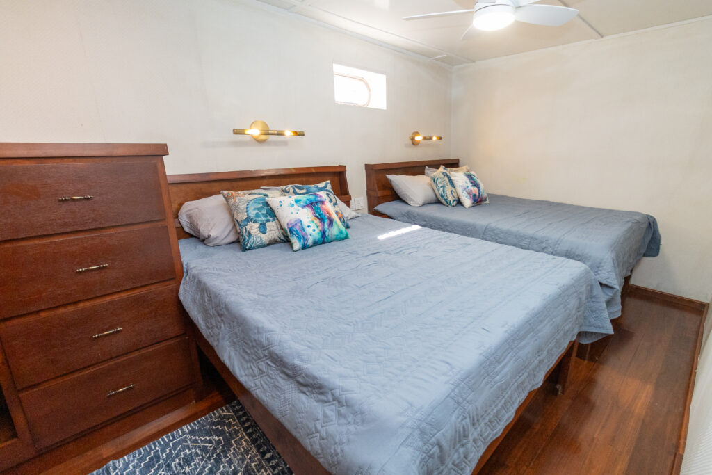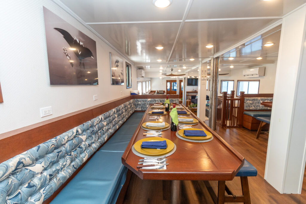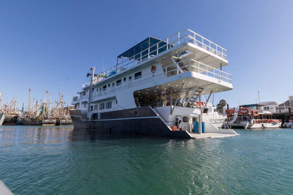 Experience the thrill of diving on a brand-new vessel, Quino del Mar! Replacing Quino el Guardian, this vessel is larger (even bigger than Rocio del Mar), providing more space, stability, and comfort. Its ten double ensuite cabins comfortably accommodates 20 divers making it an ideal choice for your diving expeditions. The captain, steward, panga drivers, divemasters, and engineer work together as a team to ensure your comfort and safety and that you come away feeling like you have a new family in Mexico. Prepare for an amazing week of diving, and come ready to eat!